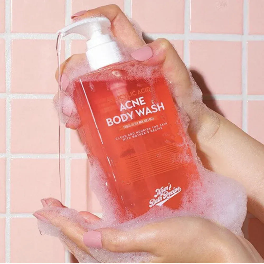 مكافحة حب الشباب في الجسم، والمسام المسدودة، والملمس الخشن مع وصفة حمام الأم، غسول الجسم لعلاج حب الشباب بحمض الساليسيليك ، منظف من منتجات التجميل الكورية غني بـ 2% حمض الساليسيليك (BHA) و مستخلص شجرة الشاي لتقشير البشرة بعمق وتنقيتها وتهدئتها. تركيبة الجل المنعشة هذه تزيل بلطف العرق وبقايا العواصف الرملية والزيوت الزائدة، مع منع نمو الشعر تحت الجلد وحب الشباب - مثالية لمناخ الكويت الرطب. غني بـ يحتوي على مستخلص السنتيلا الآسيوية والبانثينول ، ويعمل على تهدئة الالتهابات وتقوية حاجز الجلد دون الإفراط في التجفيف.